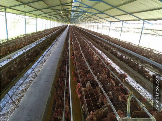 2 galpones para gallinas ponedoras que albergan 34.000 aves, tiene canales para comederos manuales y bebederos a niple, 3 fosas para recoger el estiércol de las gallinas.